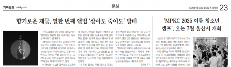 [기사] 향기로운 제물, 열한 번째 앨범 ‘살아도 죽어도’ 발매(기독일보)