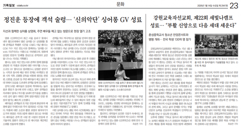 [기사] 지선과 함께하는 영화 ‘신의악단’ 싱어롱 상영회 열린다(기독일보)
